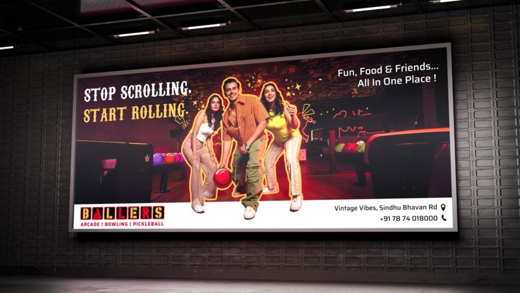 To lead people to Ballers India and let them experience its best in class bowling, gaming, and sports. The aim is to build awareness and increase footfall by inviting visitors to immerse themselves in the vibe of each zone.