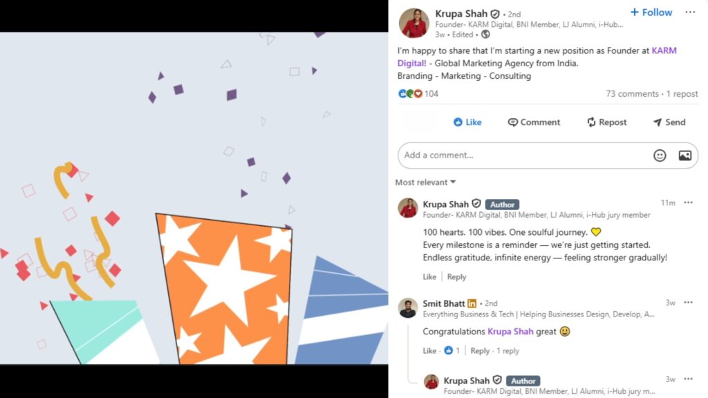 At the heart of KARM Digital lies a belief that branding is not just design, it’s a journey of alignment and identity. Inspired by the Sanskrit word “Karm,” the agency reflects mindful creation and meaningful impact. Under Krupa’s leadership, the firm blends strategy and storytelling to craft brand voices that move beyond visibility, building trust, depth, and emotional connection.