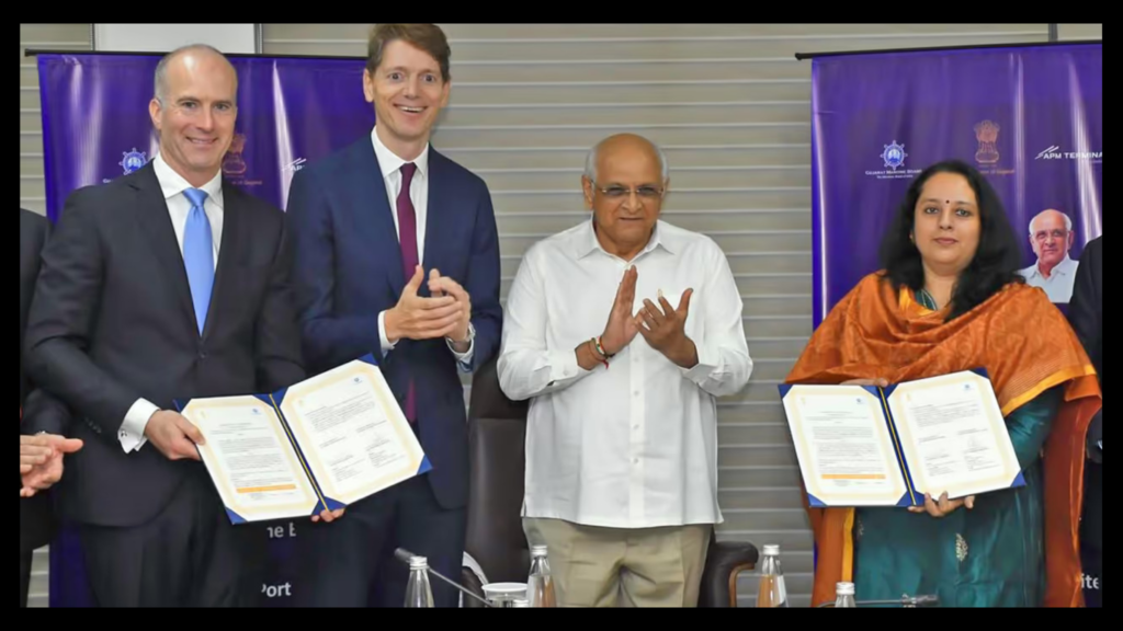 Prime Minister Narendra Modi’s vision of ‘Samudra Se Samriddhi’ has moved forward recently with the signing of a historic MoU by the state of Gujarat. Gujarat’s Pipavav Port, also known as APM Terminals, signed a Memorandum of Understanding (MoU) worth ₹17,000 crore with the Gujarat Maritime Board (GMB).