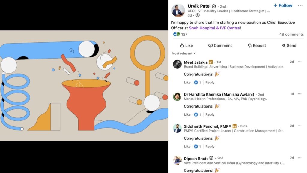 “ Taking on the role of CEO at Sneh Hospital & IVF Centre is a meaningful milestone in my journey. It is an opportunity to build upon the strong clinical foundation of the institution while strengthening systems, improving patient experience, and ensuring ethical, compassionate fertility care.” – Urvik Patel