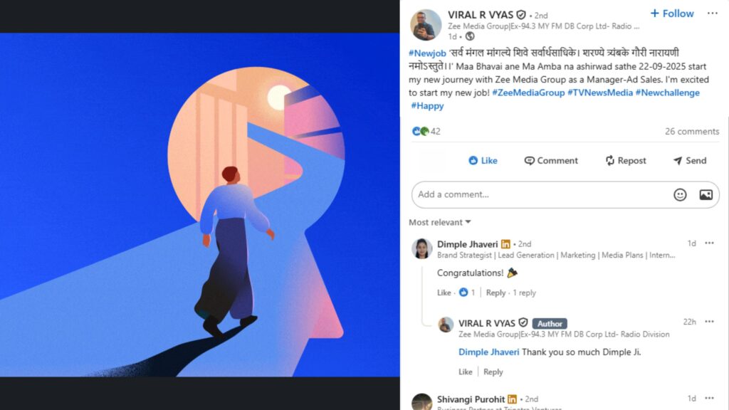 Before joining Zee Media, Viral made a strong mark in the radio industry as Deputy Manager at MY FM – Radio Division of Dainik Bhaskar Group (D.B. Corp. Ltd.), where for nearly three years he drove sponsorship activations, digital advertising sales, and broadcast media partnerships across Ahmedabad, Saurashtra, and Kutch.